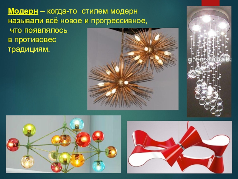 Слайд 58Сейчас люстрами в стиле модерн принято называть почти все дизайнерские