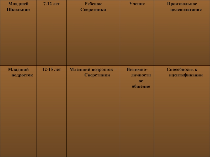 – конкретных операций (от 7-8 до 11-12 лет) В этот период дети учатся мысленно совершать действия, которые раньше они выполняли только руками.