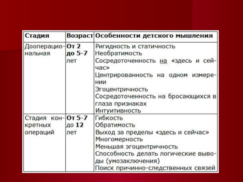 стадия - дооперациональная (от 2 до 7-8 лет); В