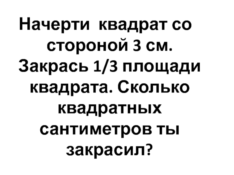 Слайд 6Начерти квадрат со стороной 3 см. Закрась 1/3 площади квадрата.