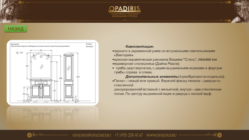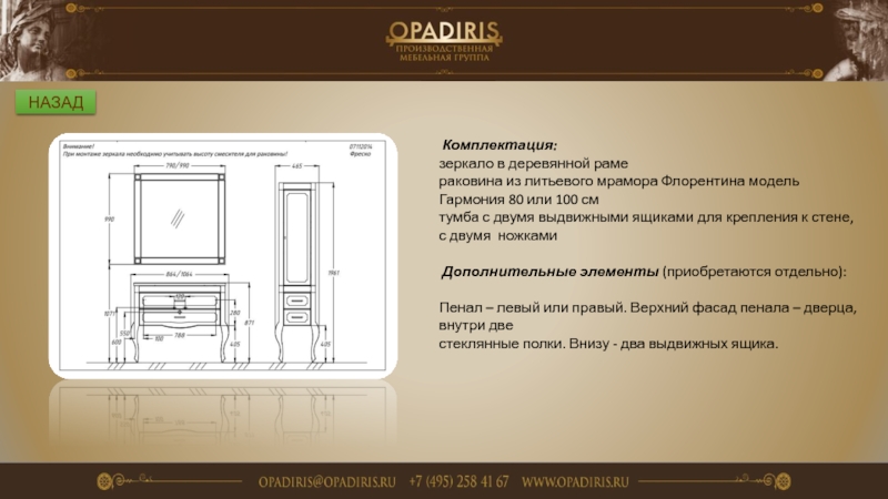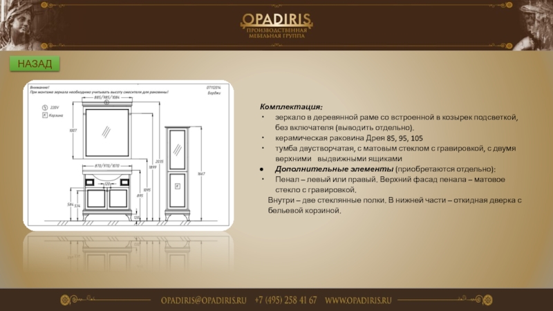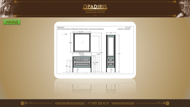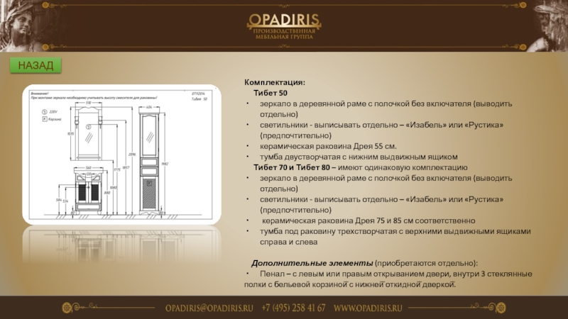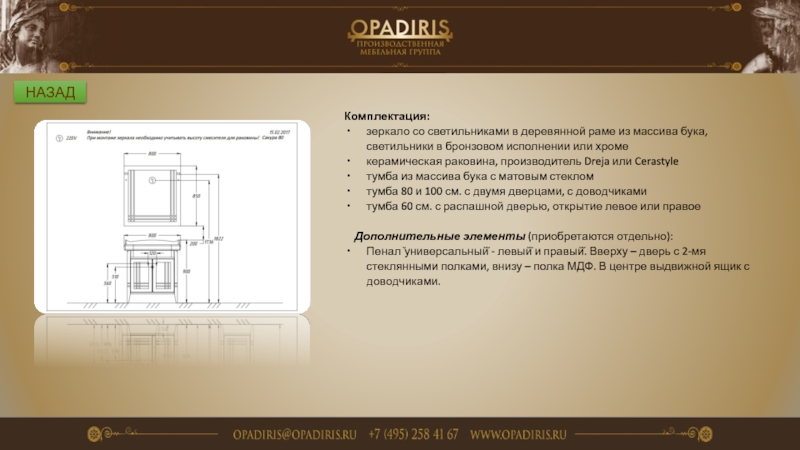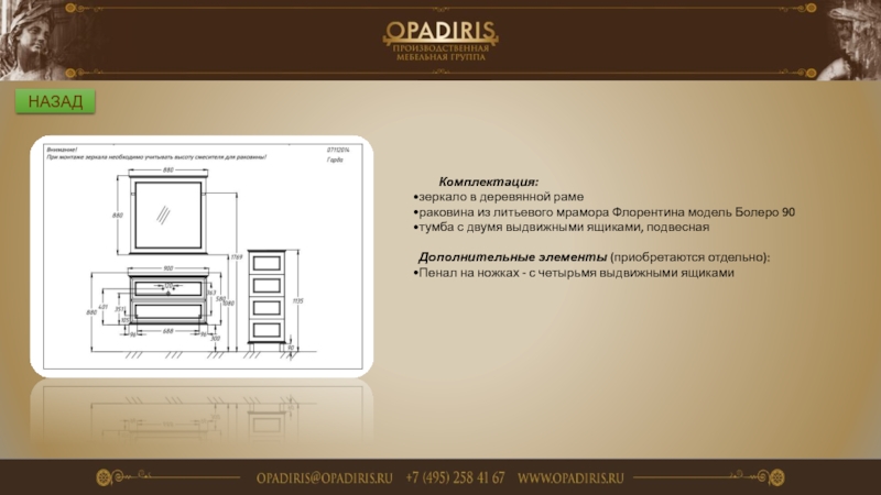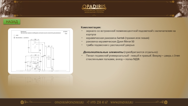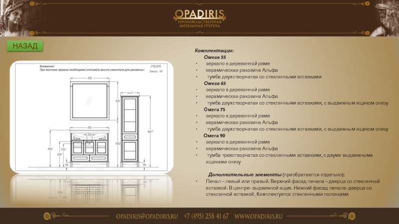 для комплектации с зеркалом – верхний подвесной шкафчик с двумя