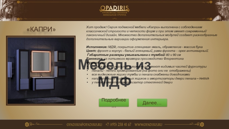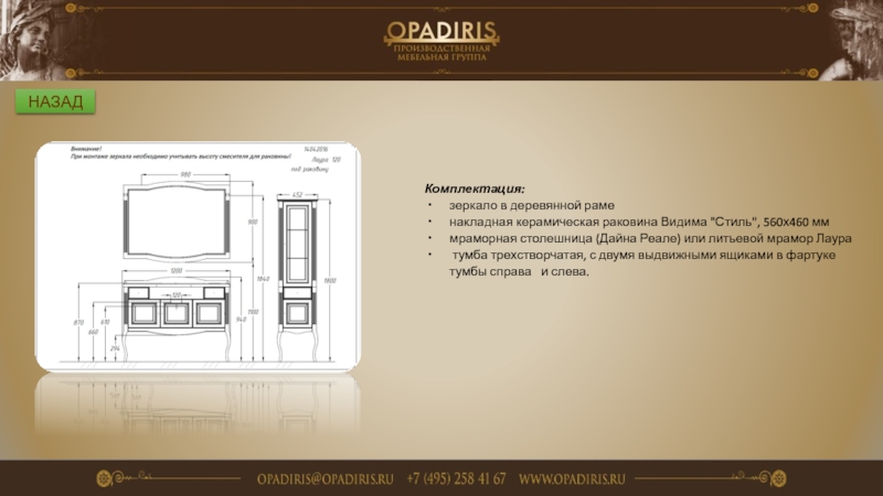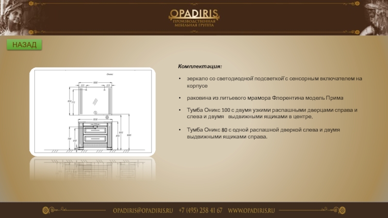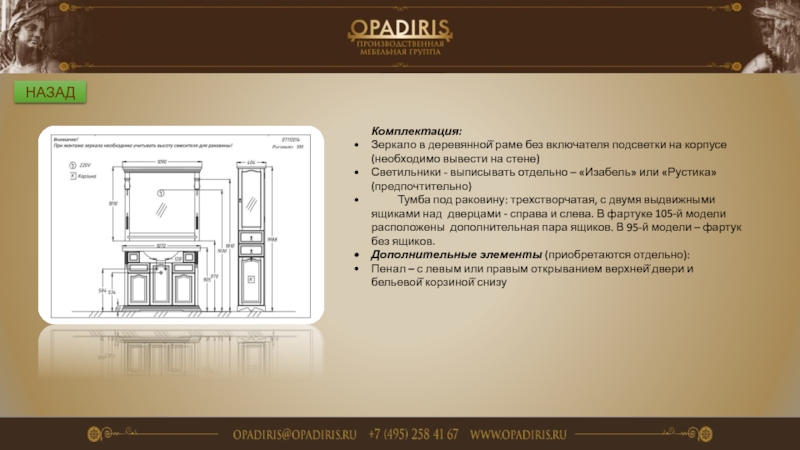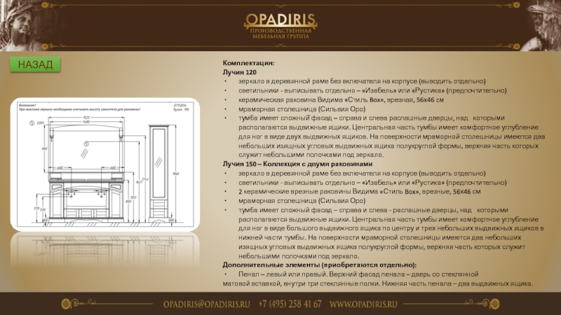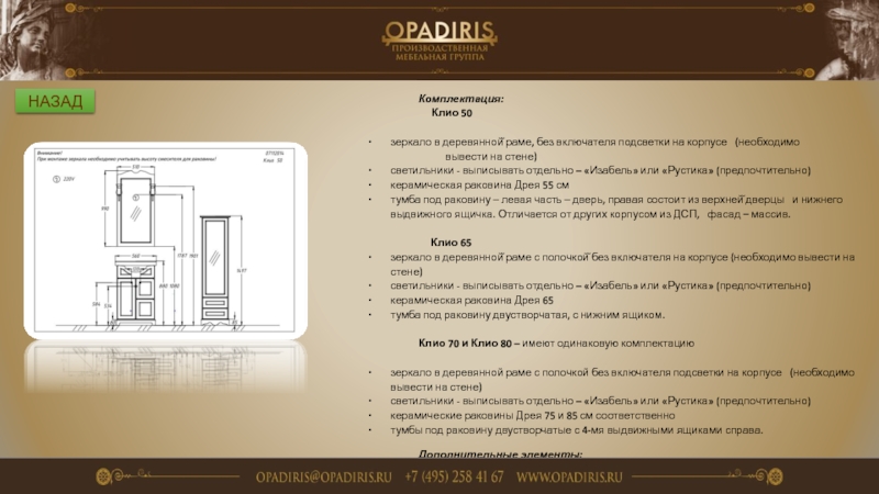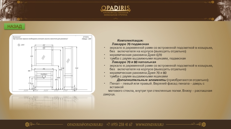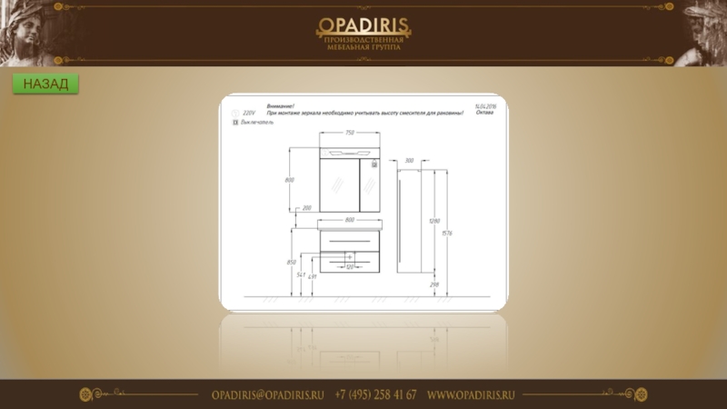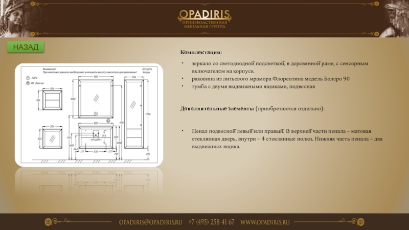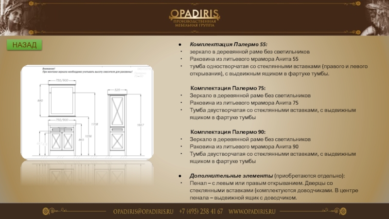 для комплектации с зеркалом – верхний подвесной шкафчик с двумя