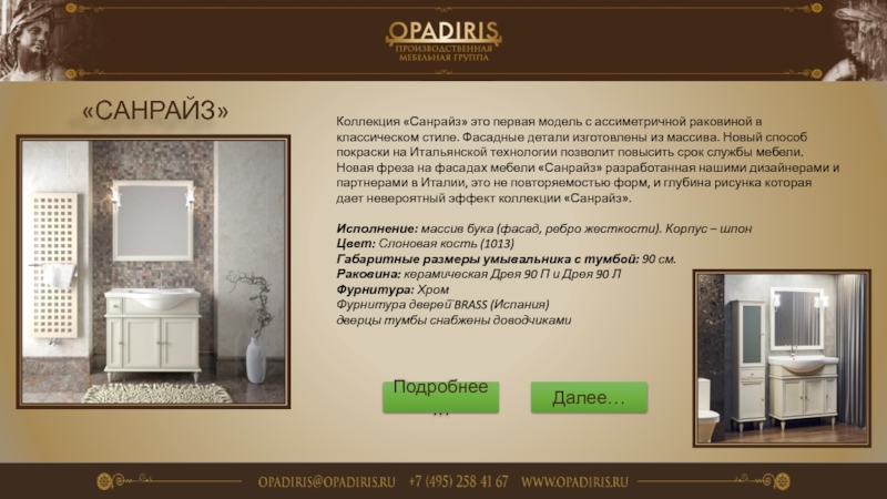 Пенал – левый или правый. Верхний фасад пенала – дверца с вставкой