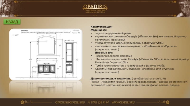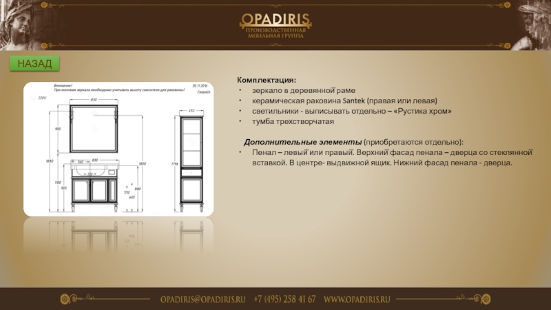 для комплектации с зеркалом - 2 верхних подвесных шкафчика (правый и