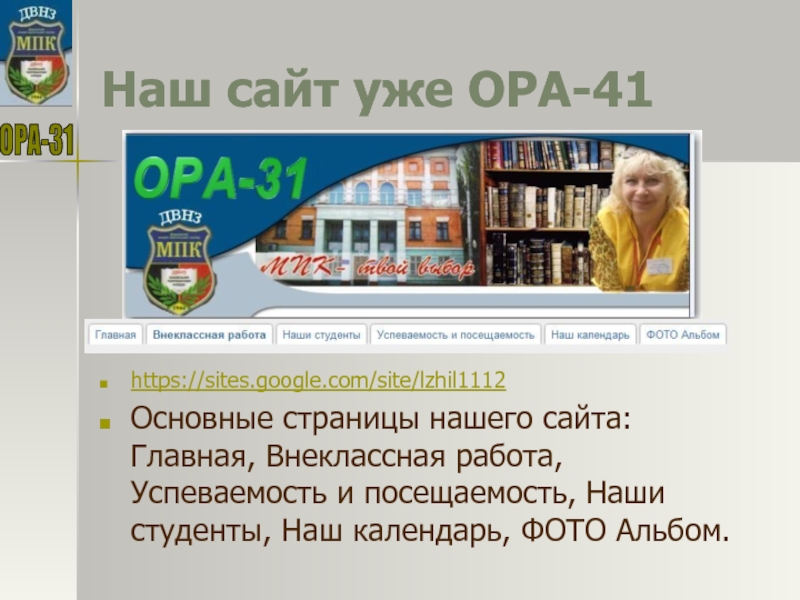 Слайд 1Отчет группы ОРА – 31 за 2011/2012 учебный год