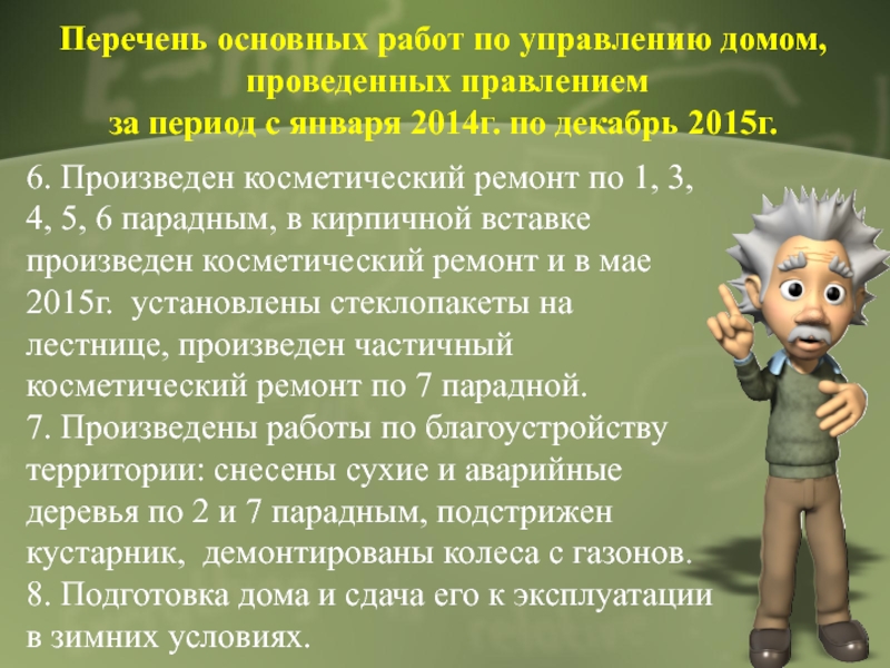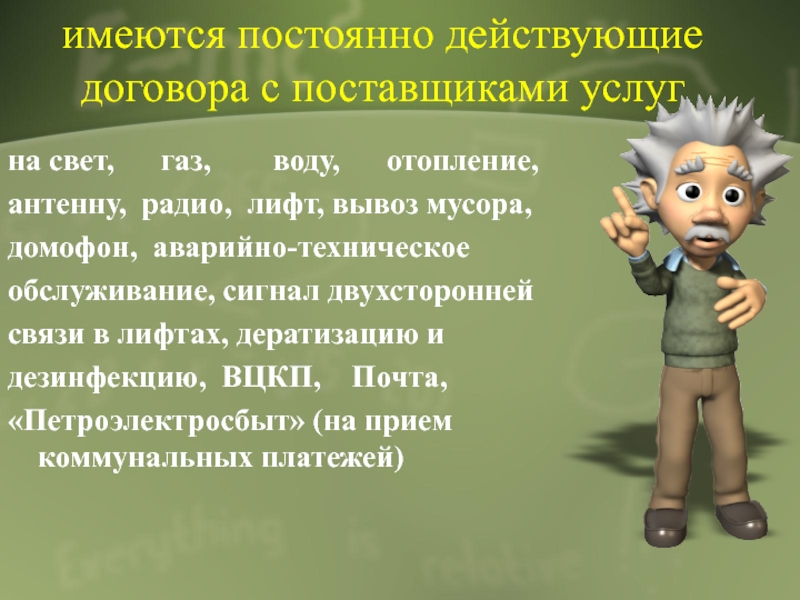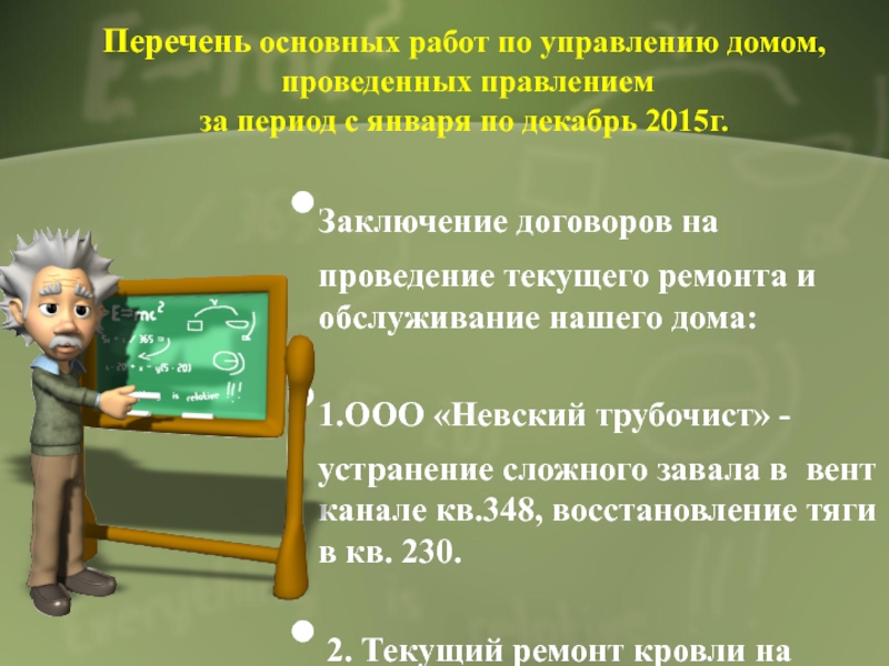 Слайд 7Заключение договоров на проведение текущего ремонта и обслуживание нашего дома: