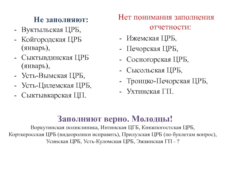 Усинская ЦРБ, Усть-Куломская ЦРБ, Эжвинская ГП - ?