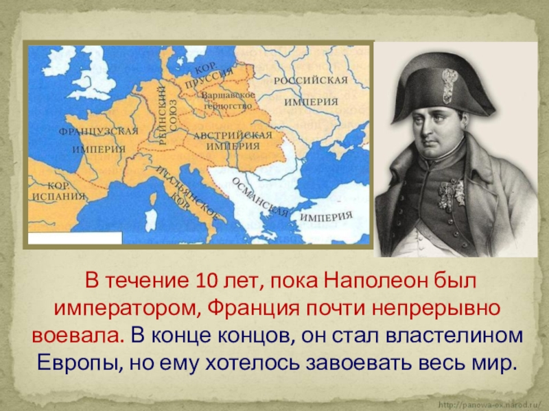Слайд 3 В течение 10 лет, пока Наполеон был императором, Франция почти
