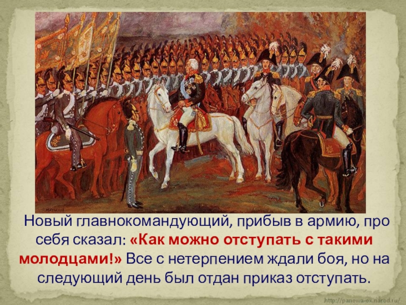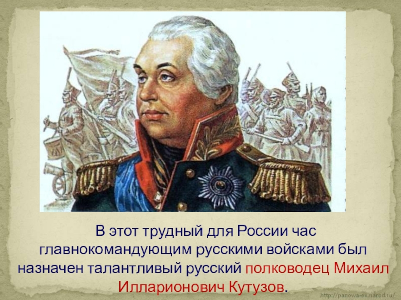 Слайд 9 В этот трудный для России час главнокомандующим русскими войсками был