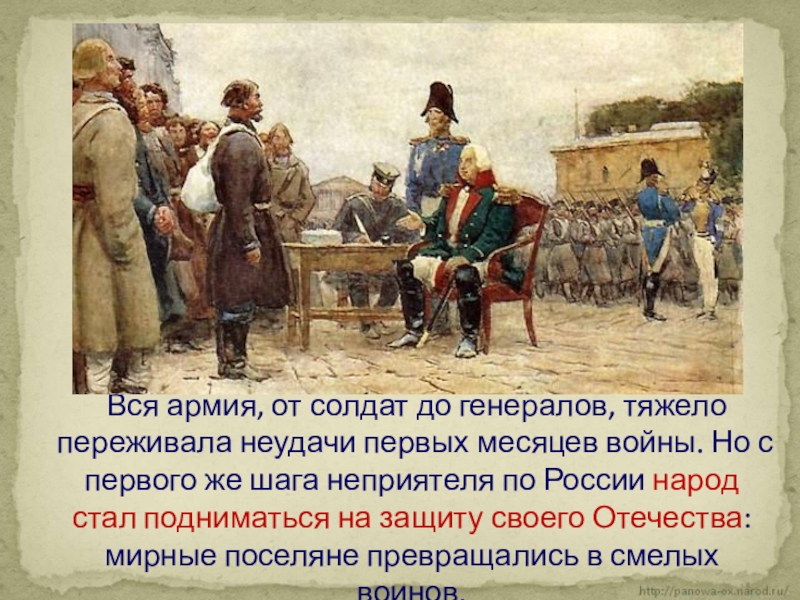Слайд 8 Вся армия, от солдат до генералов, тяжело переживала неудачи первых