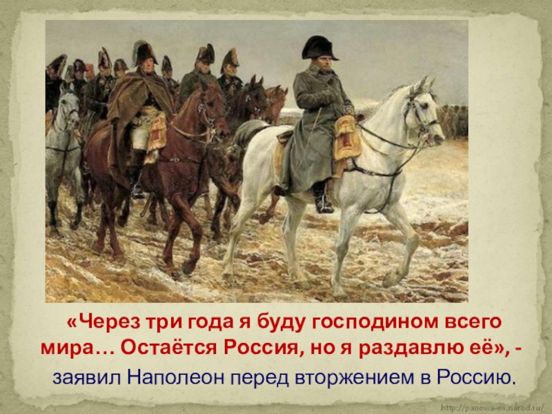 Слайд 4 «Через три года я буду господином всего мира… Остаётся Россия,