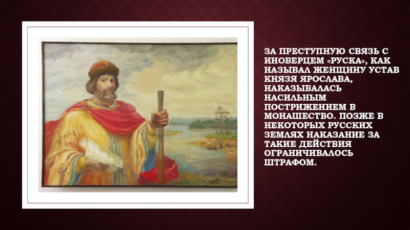 Слайд 10За преступную связь с иноверцем «руска», как называл женщину Устав
