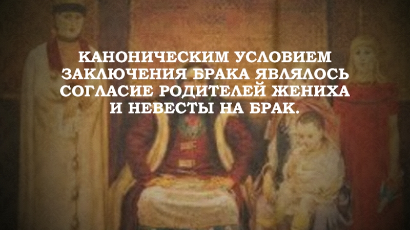 Слайд 11Каноническим условием заключения брака являлось согласие родителей жениха и невесты