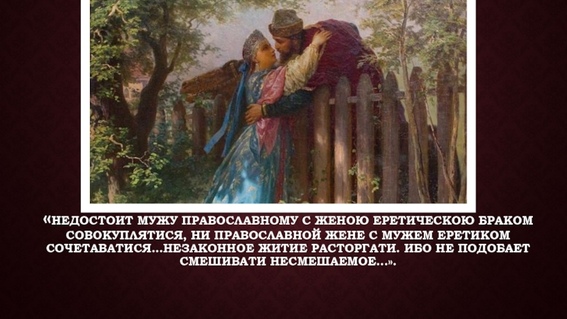 Слайд 9«Недостоит мужу православному с женою еретическою браком совокуплятися, ни православной