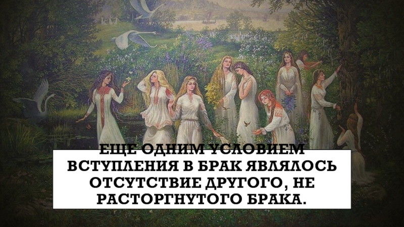 Слайд 8Еще одним условием вступления в брак являлось отсутствие другого, не