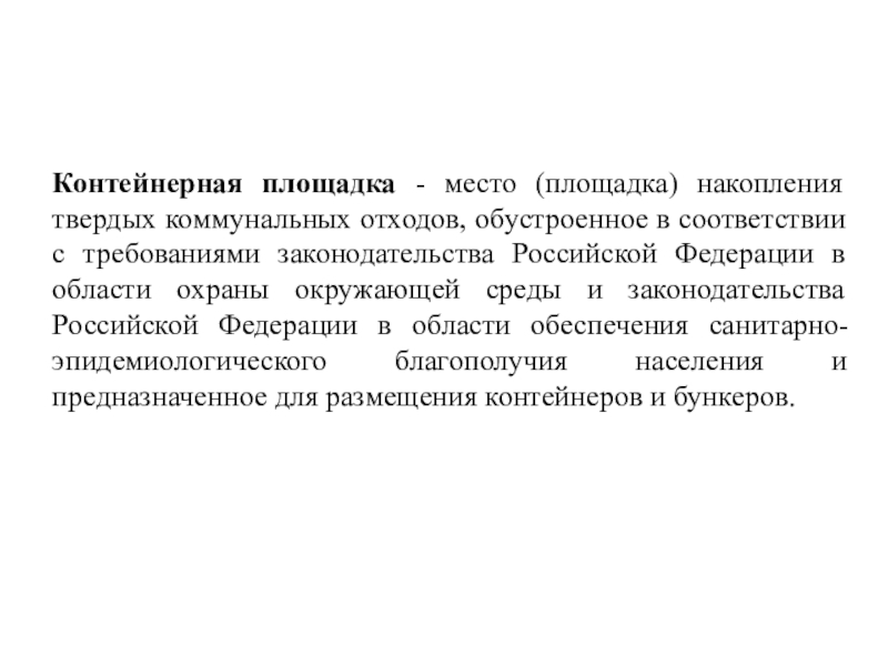 окружающей среды и законодательства Российской Федерации в области обеспечения санитарно-эпидемиологического благополучия населения и предназначенное для размещения контейнеров и бункеров.