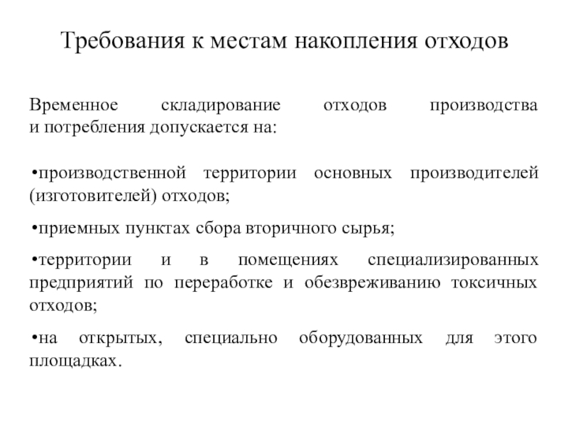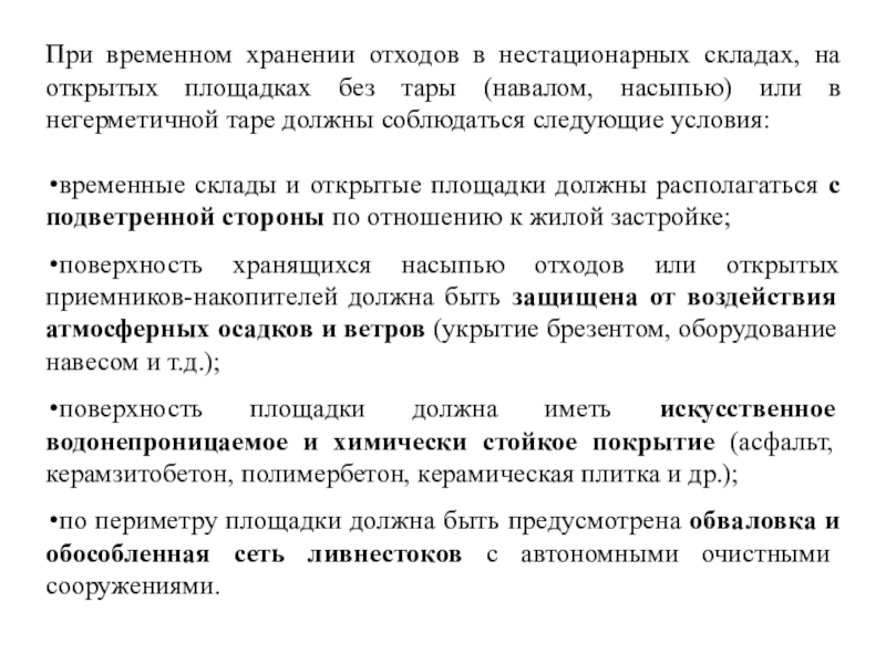 Слайд 16При временном хранении отходов в нестационарных складах, на открытых площадках