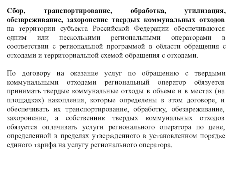 Слайд 25Сбор, транспортирование, обработка, утилизация, обезвреживание, захоронение твердых коммунальных отходов на