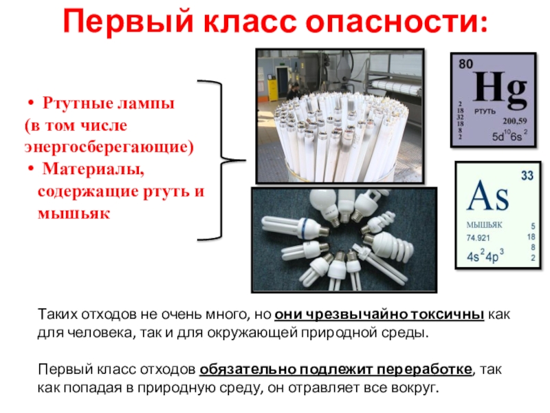 Первый класс отходов обязательно подлежит переработке, так как попадая в природную среду, он отравляет все вокруг.