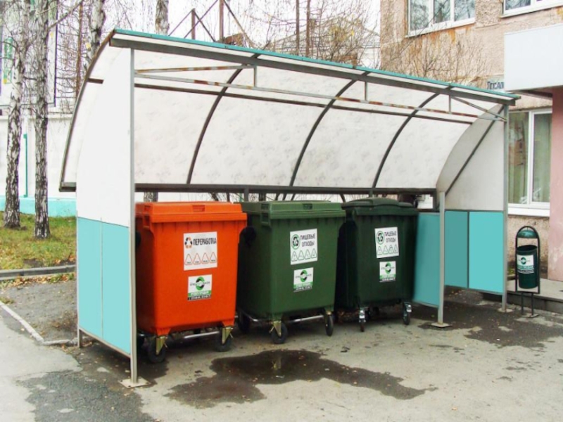 Ограждение контейнерной площадки выполняется с 3-х сторон, не исключаются варианты изготовления навеса. Места накопления мусора ограждаются конструкцией из металла или насаждениями, которые позволяют удержать мусор в пределах выделенной территории.