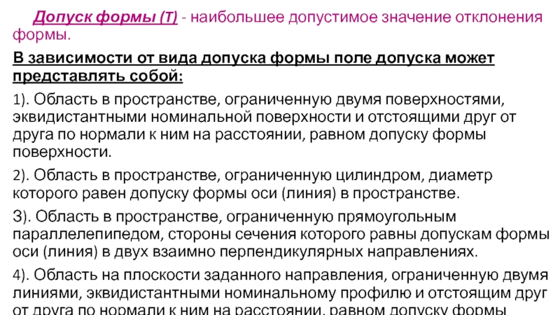 Слайд 2 Допуск формы (T) - наибольшее допустимое значение отклонения формы.