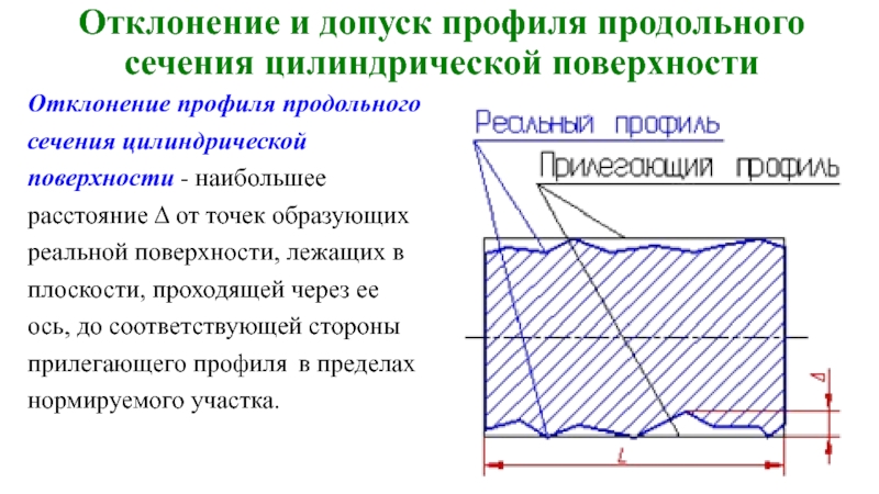 Слайд 17Отклонение и допуск профиля продольного сечения цилиндрической поверхности