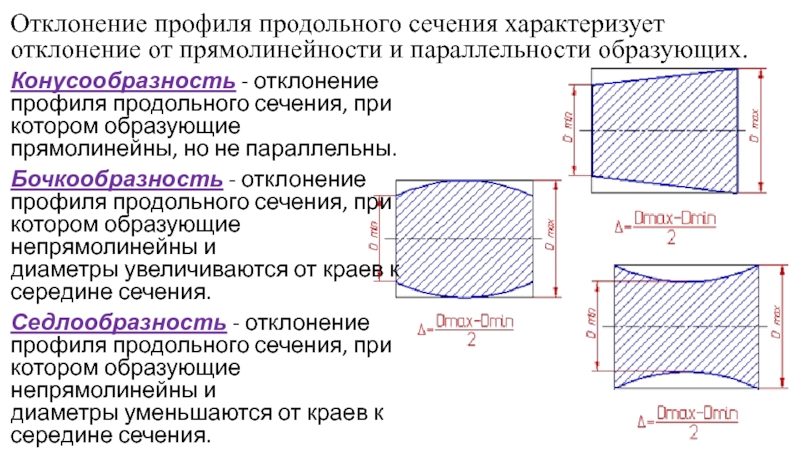 Конусообразность - отклонение профиля продольного сечения, при котором образующие прямолинейны,