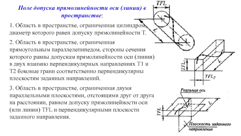 Слайд 6Поле допуска прямолинейности оси (линии) в пространстве: