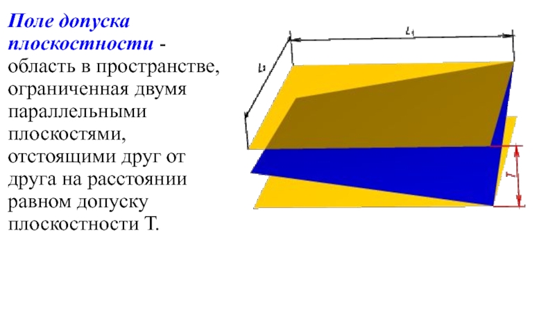 Слайд 9Поле допуска плоскостности - область в пространстве, ограниченная двумя параллельными плоскостями,