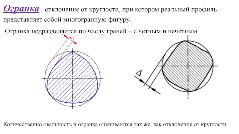 Слайд 14Огранка - отклонение от круглости, при котором реальный профиль представляет собой