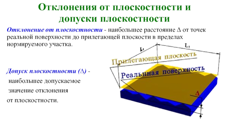 Слайд 8Отклонения от плоскостности и допуски плоскостности