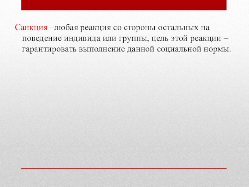 Санкция –любая реакция со стороны остальных на поведение индивида или группы, цель этой реакции – гарантировать