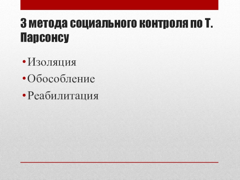 3 метода социального контроля по Т.ПарсонсуИзоляцияОбособление Реабилитация