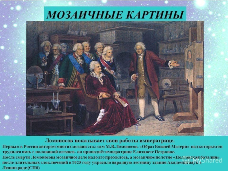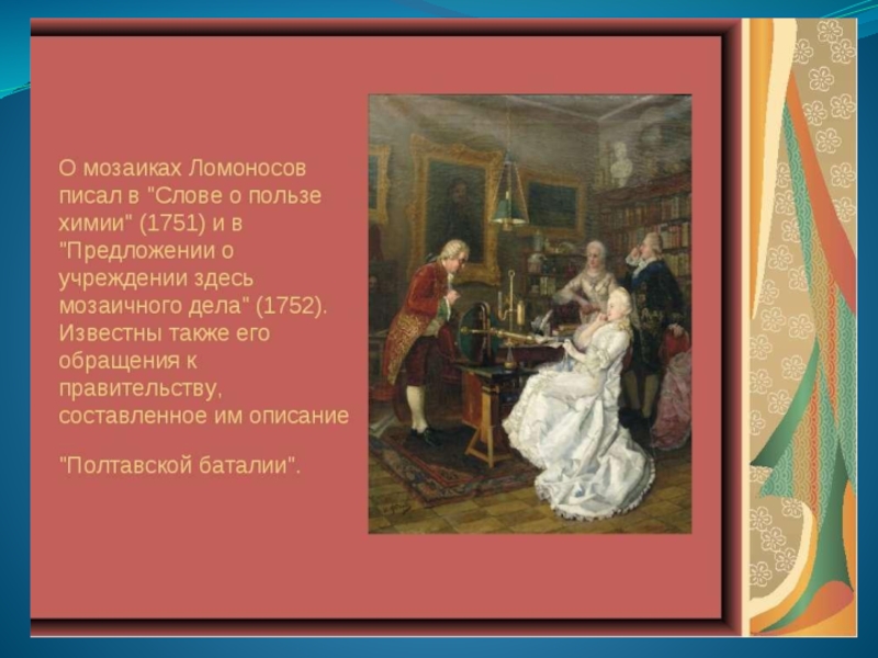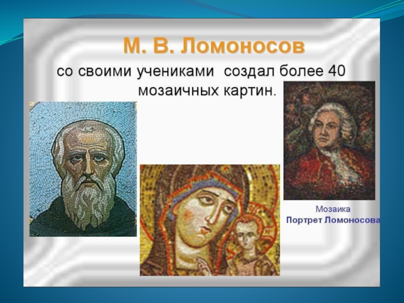 Слайд 1Открытия Ломоносова в области изобразительного искусства