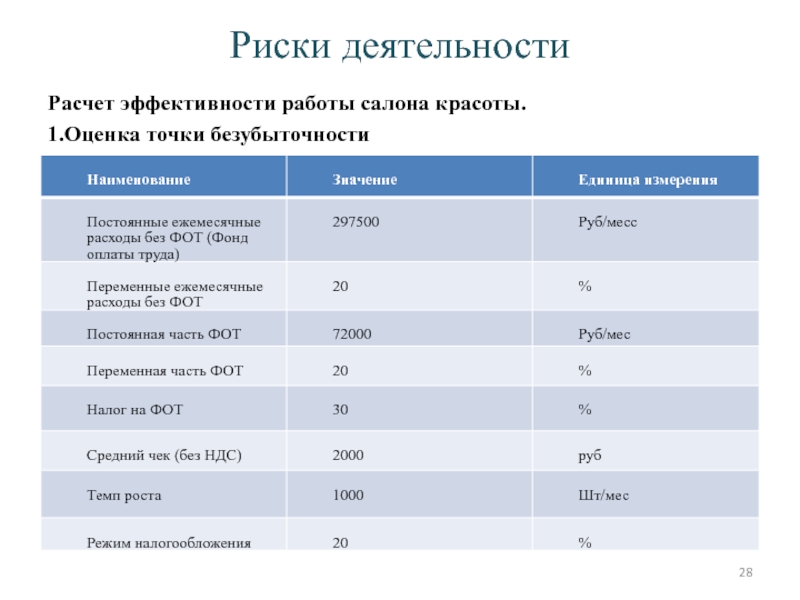 оказываемых услуг и процедур, розничной наценки на профессиональную косметику, платёжеспособности