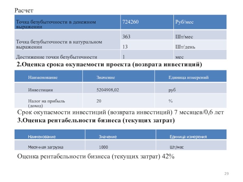 Срок окупаемости инвестиций (возврата инвестиций) 7 месяцев/0,6 лет