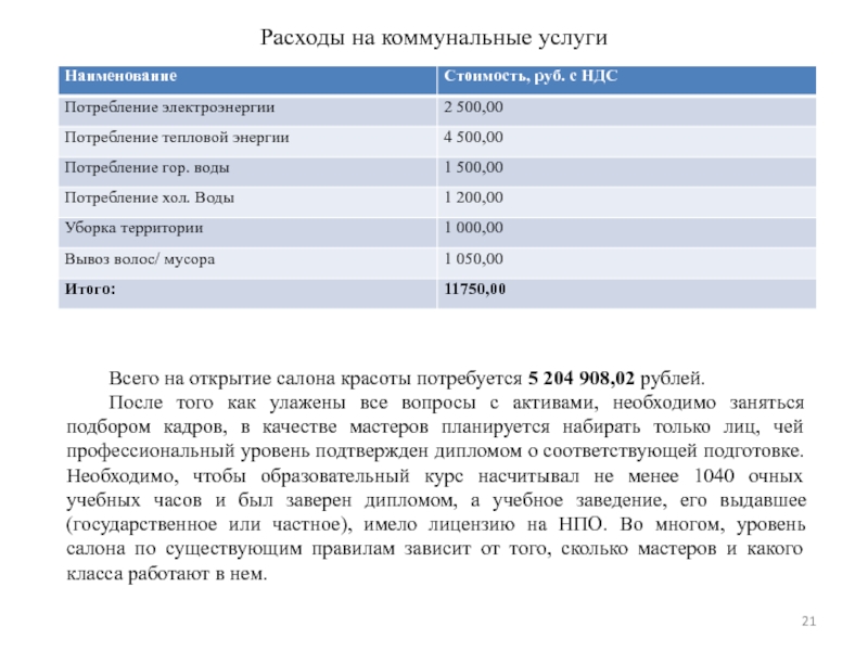 Слайд 8Для успешного функционирования салона красоты потребуется:
