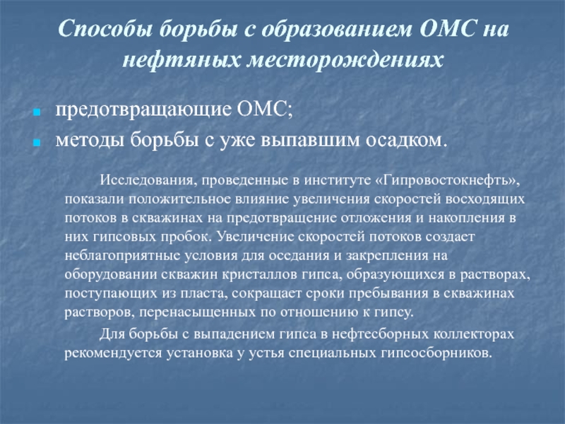 Слайд 5Способы борьбы с образованием ОМС на нефтяных месторождениях