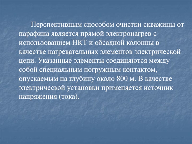 Слайд 27 Перспективным способом очистки скважины от парафина является прямой электронагрев с