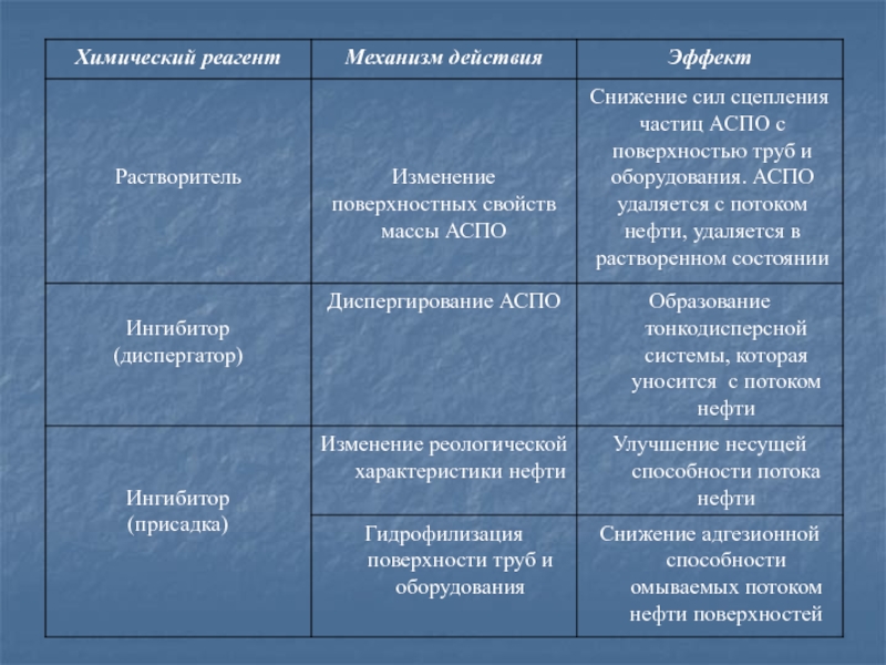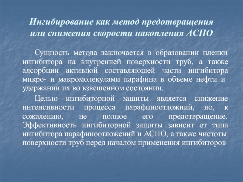 Слайд 20Ингибирование как метод предотвращения или снижения скорости накопления АСПО
