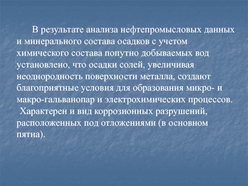 Слайд 3 В результате анализа нефтепромысловых данных и минерального состава осадков с