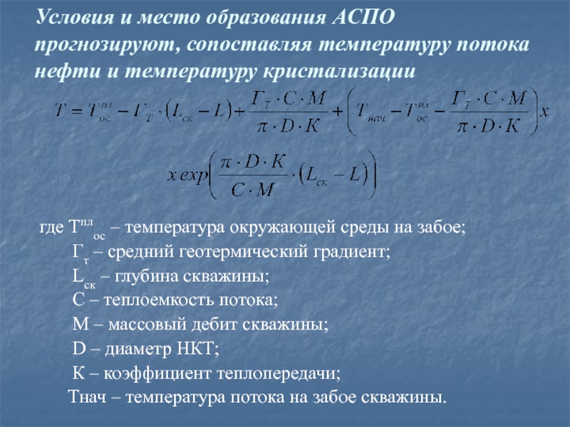 Слайд 16Условия и место образования АСПО прогнозируют, сопоставляя температуру потока нефти