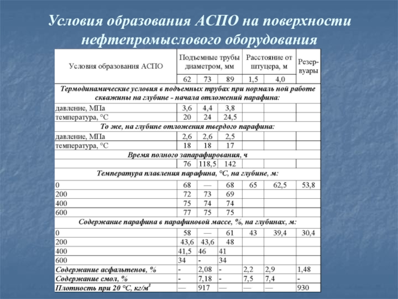 Слайд 12Условия образования АСПО на поверхности нефтепромыслового оборудования