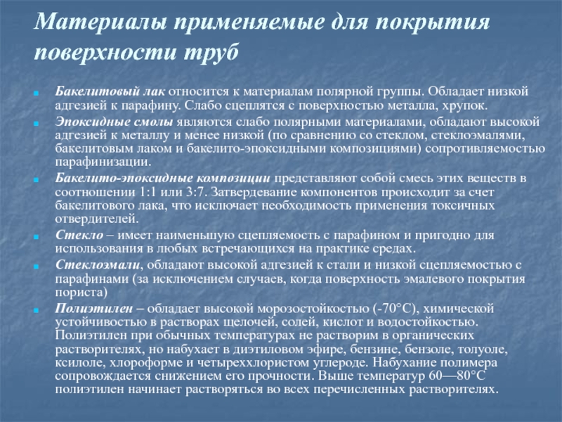 Слайд 23Материалы применяемые для покрытия поверхности труб