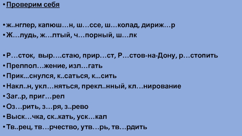 Ж…лудь, ж…лтый, ч…порный, ш…лк