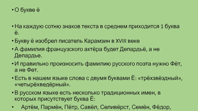 В русском языке есть несколько традиционных имен, в которых присутствует буква Ё: