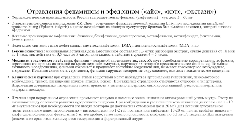 Слайд 9Отравления фенамином и эфедрином («айс», «кэт», «экстази»)
