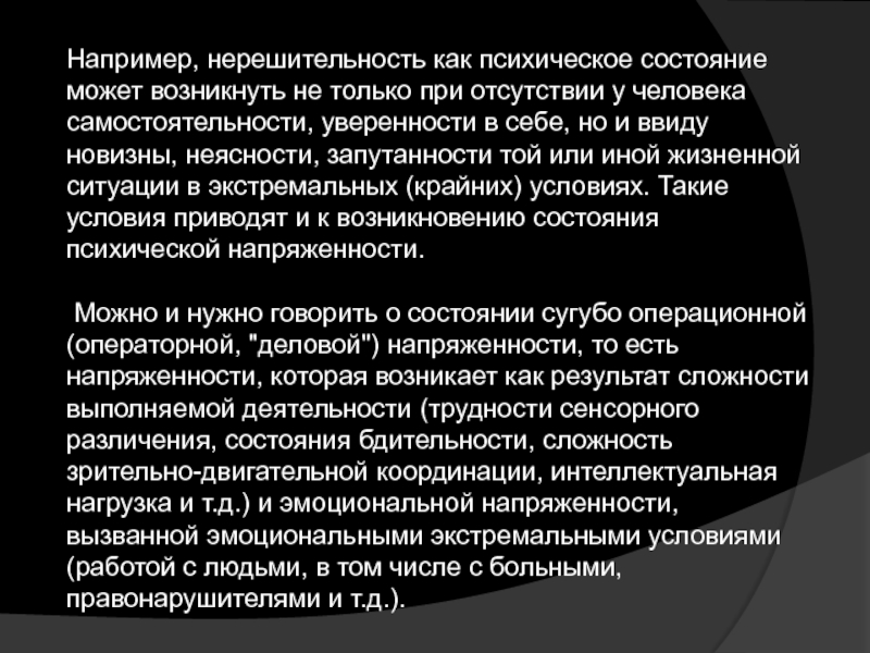 Слайд 4Например, нерешительность как психическое состояние может возникнуть не только при