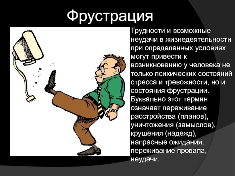 и тревожности, но и состояния фрустрации. Буквально этот термин означает переживание расстройства (планов), уничтожения (замыслов), крушения (надежд), напрасные ожидания, переживание провала, неудачи.
