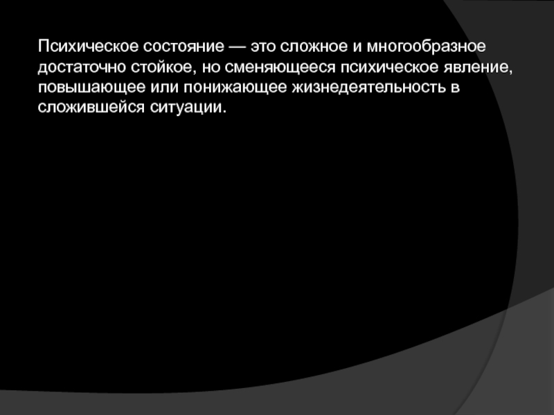 Слайд 2Психическое состояние — это сложное и многообразное достаточно стойкое, но